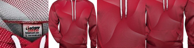 - Scuba shaped three-piece hood with color-contrast lining